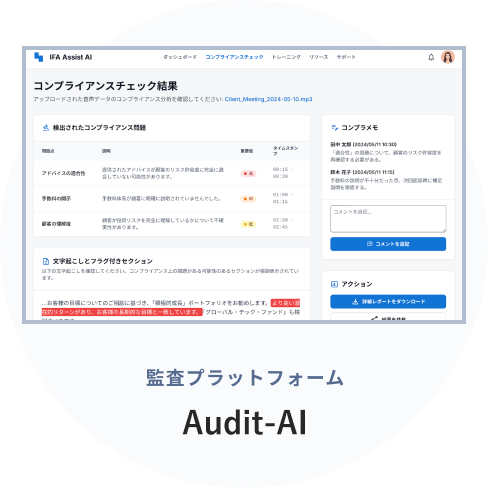 AIによるコンプライアンス業務の効率化・高度化を実現するサービス「Audit-AI」を提供しています。